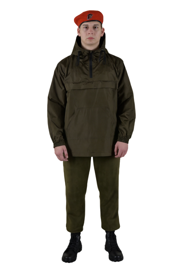 Ветровка-анорак «Юнармия» цвета хаки выполнена из уникальной легкой и прочной ткани, которая превосходно защищает от влаги и ветра.